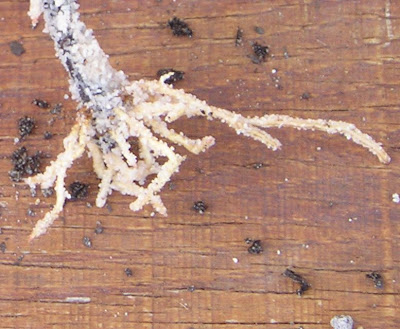 Here in the three pictures on the right you can see what the goal was: too make roots. Once the plant has these little legs beneath it it can be potted up in soil. The plants will now have an easier time getting water.